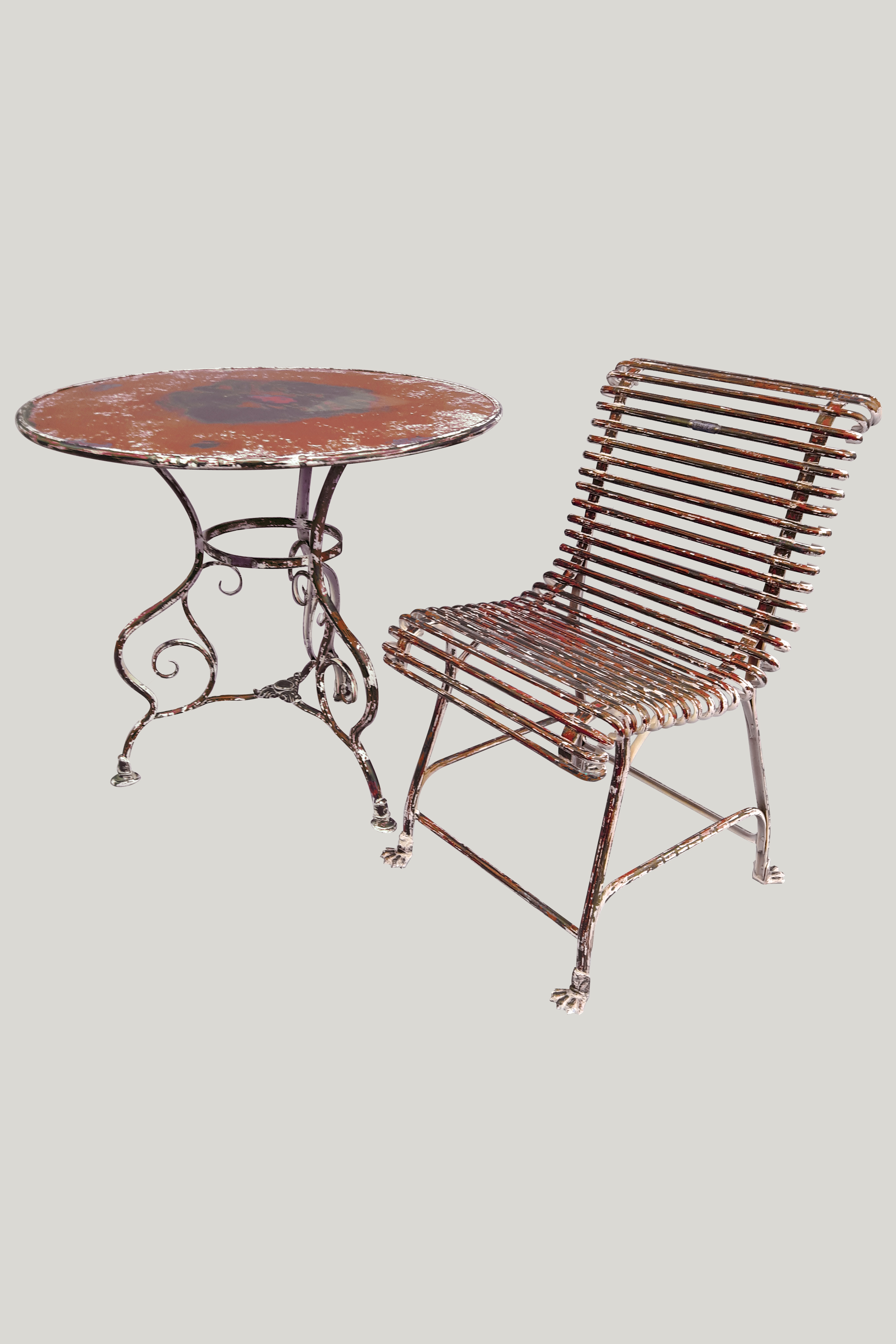 Er ist aus Schmiedeeisen von den erfahrenen Händen der Schmied handgefertigt Die Montage wird durch Nieten und wie der Originalprodukt, die Füße sind aus Gusseisen in Form von einem Löwe Klauen gemacht.