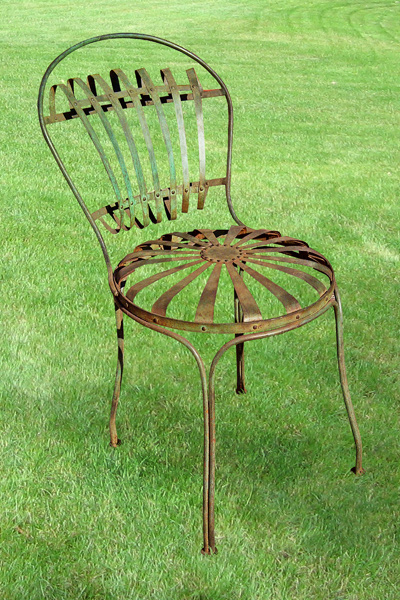 Im Sinne der traditionellen Hardware-Arbeits Weise präsentieren wir Ihnen ein langlebig und komfortabel Modell aufgrund der Kombination aus Schmiedeeisen und Stahl gebogene Elastische Bänder für die Sitzfläche und Rückenlehne des Stuhls.